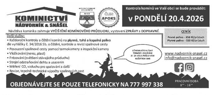 Úvod > Pro občany > Aktuality > Kontrola komínů 20.4.2026