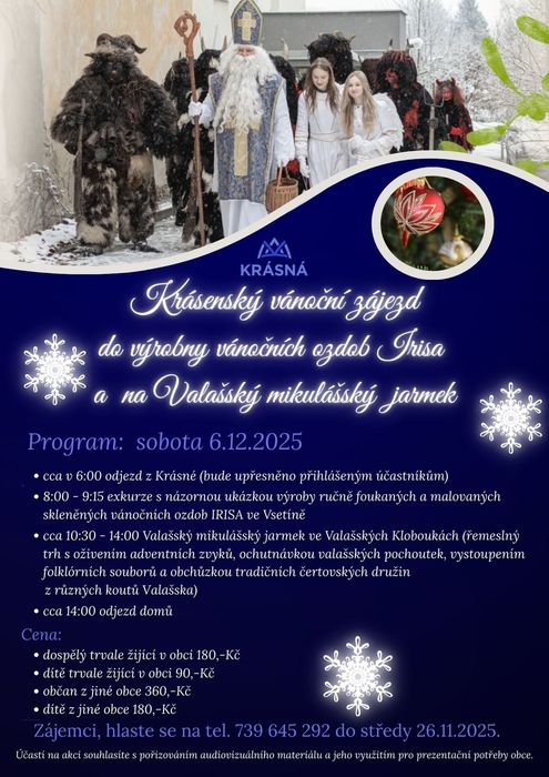 Úvod > Pro občany > Aktuality > Krásenský vánoční zájezd do výrobny vánočních ozdob Irisa a na Valašský mikulášský jarmark