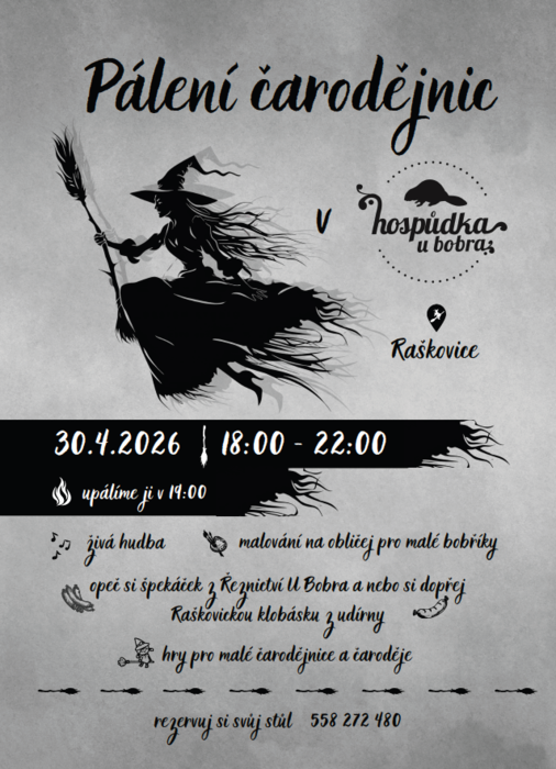 Úvod > Pro občany > Aktuality > Pálení čarodějnic v Hospůdce u bobra 2026