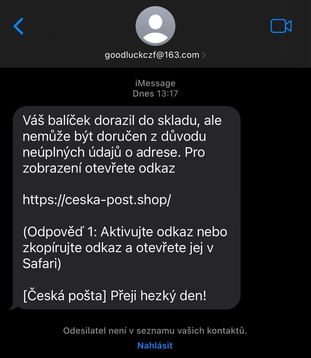 - Neotevírejte odkazy v příchozích zprávách (sms, email, soc. sítě apod.) z neznámých zdrojů!