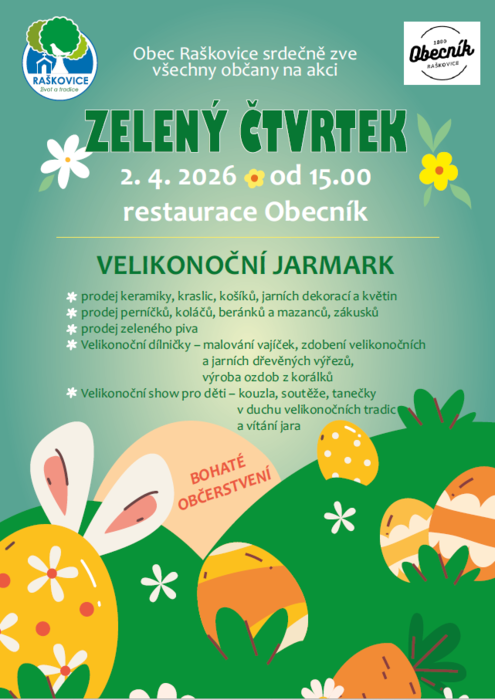 Úvod > Pro občany > Aktuality > Zelený čtvrtek 2.4.2026 v restauraci Obecník
