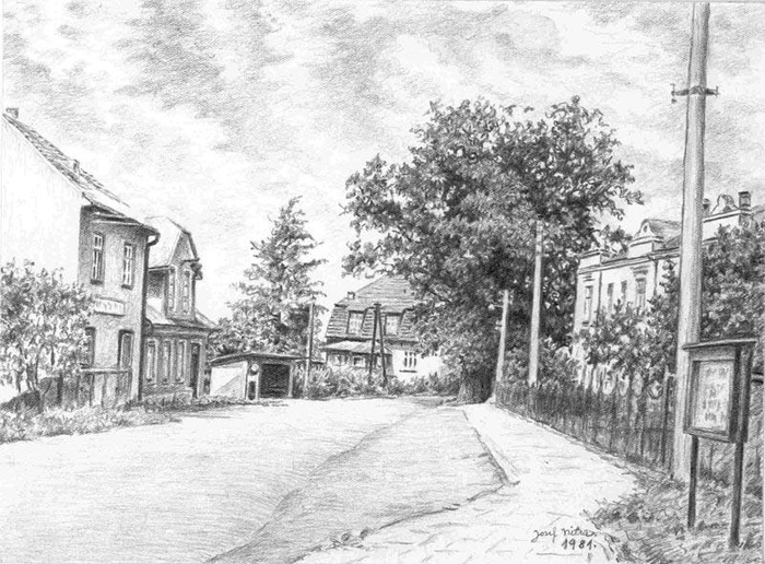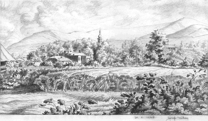 Úvod > Obec > Fotogalerie > Dobové kresby, Josef Nitra st.