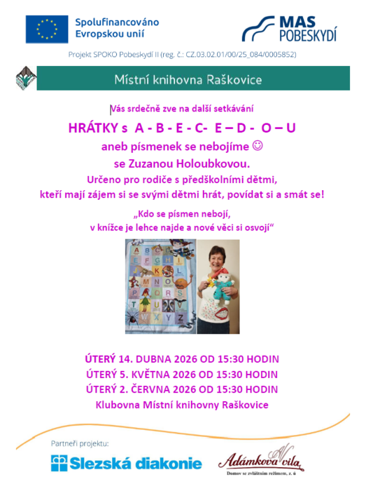 Úvod > Život v obci > Kultura > Kulturní akce > HRÁTKY s A - B - E - C- E – D - O – U aneb písmenek se nebojíme se Zuzanou Holoubkovou